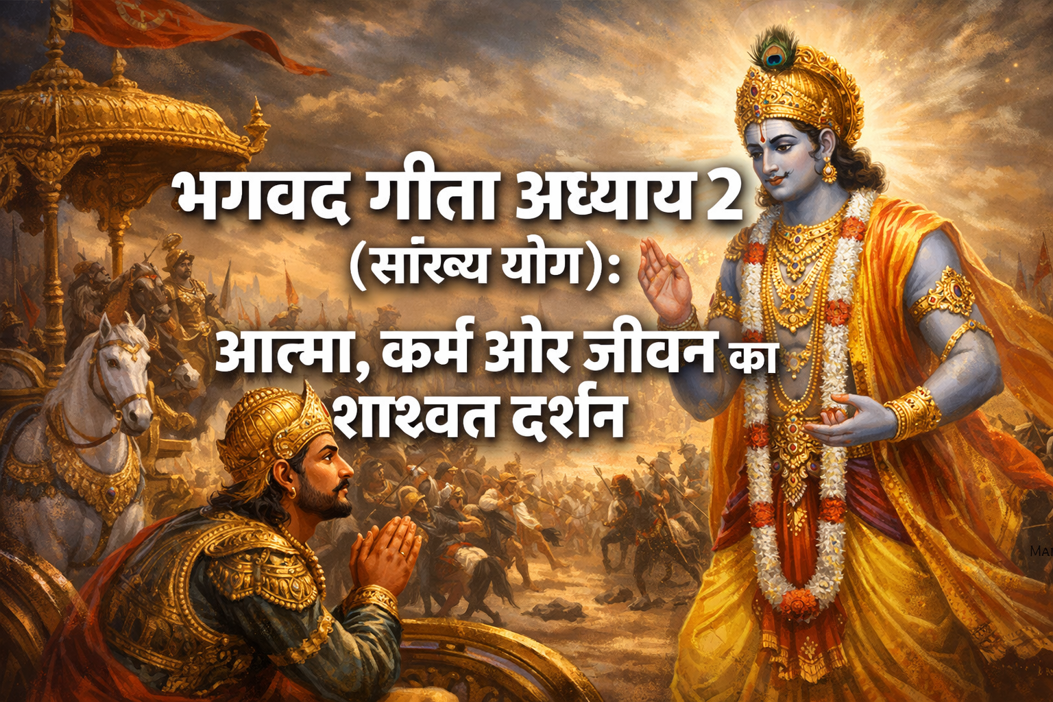 क्या आप भी जीवन के सबसे बड़े प्रश्नों—मैं कौन हूँ? मेरा कर्तव्य क्या है? मुझे दुःख क्यों होता है?—के उत्तर खोज रहे हैं? क्या आप भी भय, चिंता और भ्रम के भंवर में फँसे महसूस कर रहे हैं? यदि हाँ, तो भगवद गीता का दूसरा अध्याय, जिसे 'सांख्य योग' के नाम से जाना जाता है, आपके लिए एक प्रकाशस्तंभ है। यह अध्याय केवल एक धार्मिक ग्रंथ का हिस्सा नहीं, बल्कि जीवन जीने का एक शाश्वत दर्शन है, एक मनोवैज्ञानिक मार्गदर्शिका है जो 2026 में भी उतनी ही प्रासंगिक है, जितनी हजारों वर्ष पहले थी।