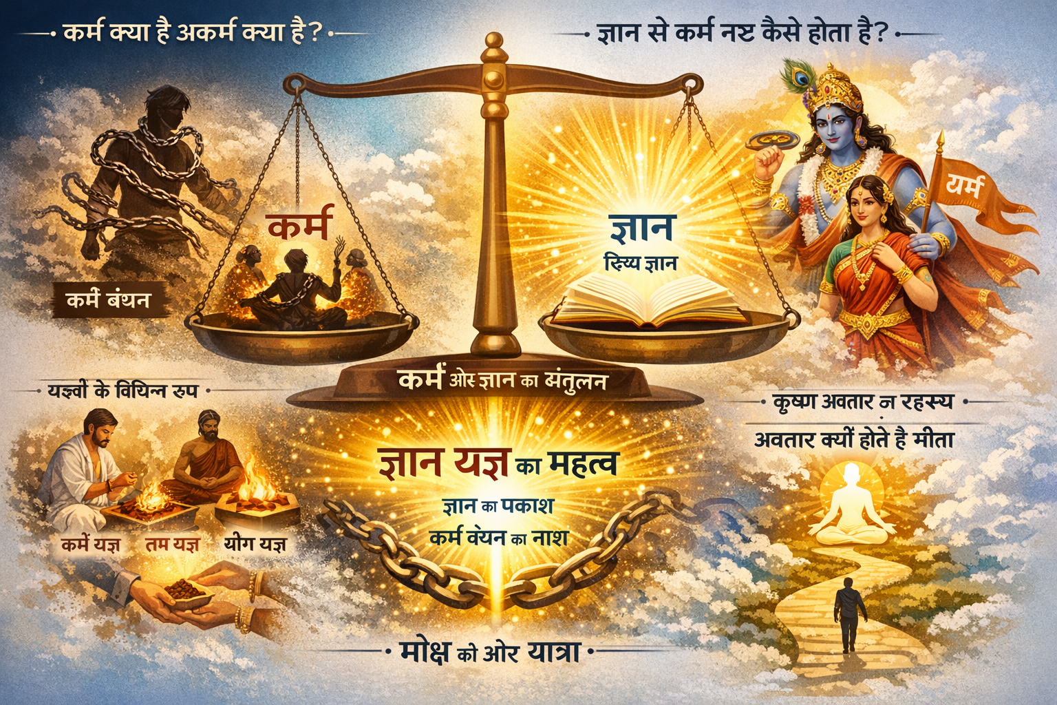 यह हमें सिखाता है कि आध्यात्मिक उन्नति की एक अवस्था ऐसी भी होती है जहाँ कर्म हमें बांधते नहीं, बल्कि मोक्ष का साधन बनते हैं। जब व्यक्ति निष्काम भाव से कर्म करता है, तो उसके कर्म दिव्य हो जाते हैं, और वह उनके फलों से मुक्त हो जाता है। यह 'ज्ञान से कर्म नष्ट कैसे होता है' के सिद्धांत की नींव है।