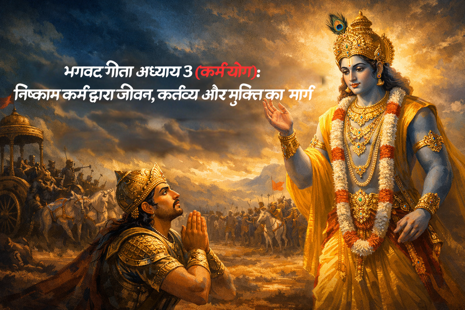 'भगवद गीता अध्याय 3' में श्रीकृष्ण अर्जुन को यही सिखाते हैं: युद्ध करो, लेकिन फल की इच्छा से नहीं, बल्कि अपने धर्म और कर्तव्य के पालन के रूप में। यही 'गीता कर्मयोग सरल व्याख्या' है।
