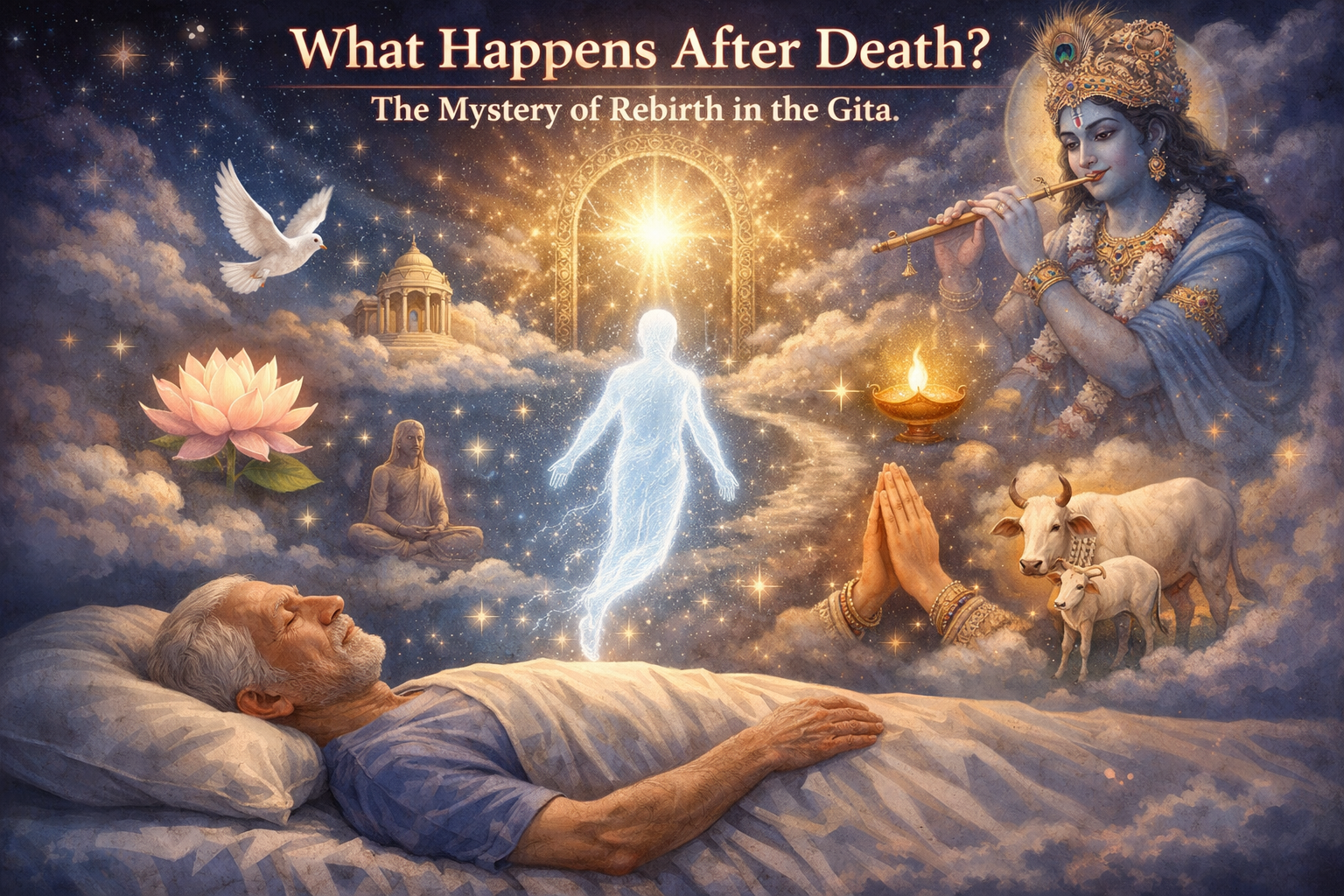 भगवद गीता अध्याय 8 में भगवान कृष्ण मृत्यु के बाद आत्मा की गति के दो प्रमुख मार्गों का वर्णन करते हैं, जिन्हें देवयान (शुक्ल मार्ग) और पितृयान (कृष्ण मार्ग) कहा जाता है। यह 'पुनर्जन्म का रहस्य गीता' में सबसे स्पष्ट रूप से समझाया गया है और हमें 'मृत्यु के बाद क्या होता है' इसकी एक विस्तृत तस्वीर देता है।